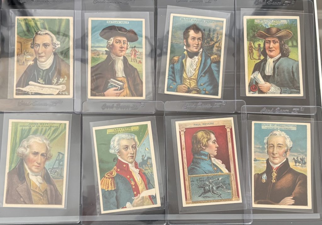 The T68 Heroes of History set (1910–1911), produced by the American Lithographic Company for American Tobacco Company products like Royal Bengals cigars, is celebrated for its bold color and educational content. But the original artwork lived on well after the tobacco promotion ended—surprisingly reused in promotional series for bread, milk, and butter.