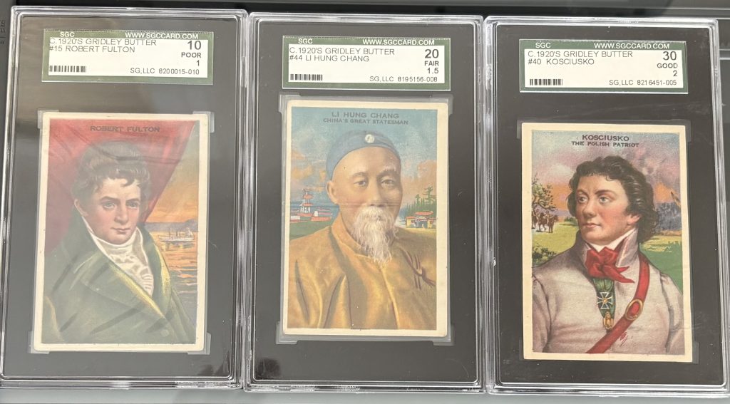 Though T68 remains the most collectible, Famous Men and Gridley Butter cards are significant for collectors of ephemera, advertising history, and early mass market promotional giveaways.