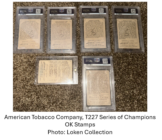 Shortly after earlier research into trade-era markings was published, collector Lance Loken documented multiple OK-stamped examples from the T227 Series of Champions.