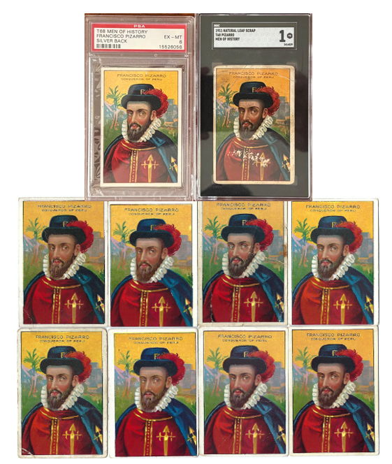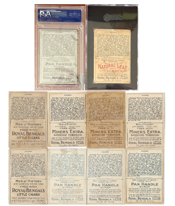Francisco Pizarro is fully confirmed across all major advertising backs, variation layers, and ink classifications, achieving both set completion and research-level completion.
