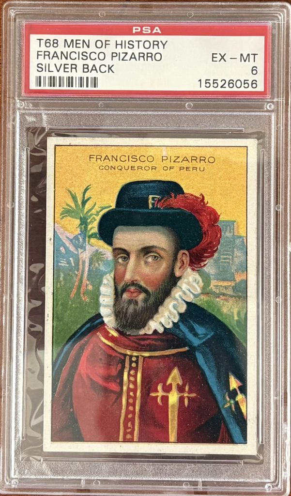 Francisco Pizarro, the Spanish conquistador responsible for the conquest of the Inca Empire, stands as one of the most consequential and controversial figures represented in the T68 Men of History series. His inclusion reflects the set’s broader educational scope, extending beyond American figures to include global actors who reshaped civilizations and continents.