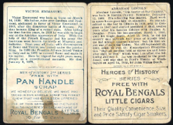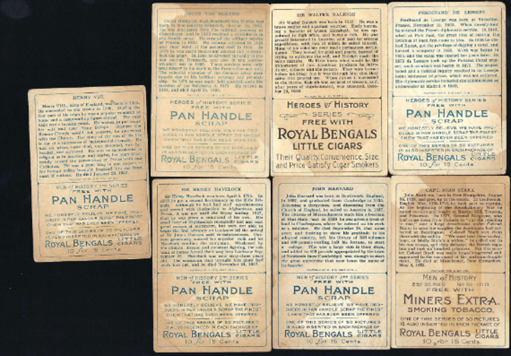 These distinctions are critical when evaluating condition and authenticity. A heavily stained Pan Handle Scrap example may reflect expected environmental exposure, while a similarly heavy stain on a Royal Bengals card could warrant closer examination. Ultimately, staining patterns serve as a reflection of the physical realities of early 20th-century tobacco packaging and distribution, linking each card not only to its subject but to the specific product that carried it into circulation.